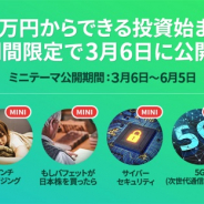 LINE Financialは、「LINE」上から「キャッシュレス」「テレビゲーム」といった、身近なテーマへの投資を通じた資産づくりを行える「LINEスマート投資」で、新商品「ミニテーマ」を販売すると発表した。ミニテーマは、投資初心者の方の投資に対するハードルをさらに下げることを目的にしているという。「LINE」のトーク画面右下にあるウォレットマークからワンタップでアクセスでき、時代のトレンドや、ご自身の興味関心に合ったテーマを選ぶだけで資産運用を始められる。「ドローン」や「キャッシュレス」、「ヘルステック」、「テレビゲーム」といった様々なテーマ(現在約90テーマ)を提供しており、各テーマに関連した10社の銘柄への少額分散投資が可能になっている。ミニテーマは、テーマに関連した銘柄への分散投資ができるという点は変わらず、テーマに含まれる銘柄数などを調整して投資金額を抑えた、期間限定商品になる[…]