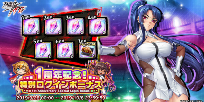 「対魔忍RPG」にて一周年記念キャンペーンが開催!プレミアム11連ガチャチケットを配布するログインボーナスなどが実施