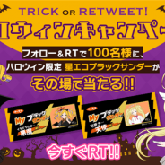 ジークレストは、2019年公開予定の新作スマートフォンゲーム『星鳴エコーズ』において、10月31日より、ハロウィン特別企画としてTwitter キャンペーンを開始したことを発表した。この度『星鳴エコーズ』は、10月31日より、オリジナルブラックサンダーが当たるハロウィン特別Twitter キャンペーン「TRICK OR RETWEET!」を2日間限定で開始した。該当のツイートをリツイートいただいた方の中から抽選で100名に本キャンペーン限定パッケージ(2 種)のブラックサンダーをプレゼントする。<以下、プレスリリースより>■「共鳴クイズ」キャンペーン 概要期間中に『星鳴エコーズ』公式 Twitter をフォローし、該当のツイートをリツイートいただいた方の中から抽選で 100 名様に、『星鳴エコーズ』オリジナルブラックサンダー(2 種セット)をプレゼントいたします。ハロウィン衣装の花折伊吹([…]