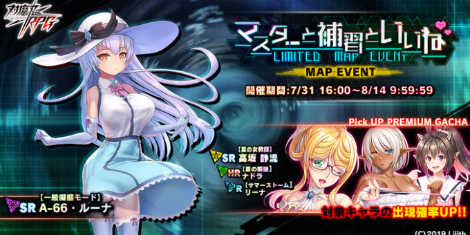 インフィニブレインは、近未来くノ一ロールプレイングゲーム「対魔忍RPG」において、本日7月31日よりマップイベント「マスターと補習といいね」を開始した。