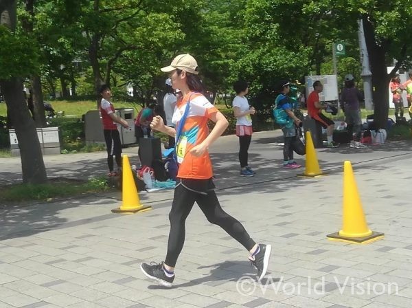 2019年、同僚とリレーマラソンに参加した筆者。息切れしても、仲間に応援されると走れた
